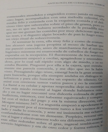 En dicha antología aparece el cuento de David Auris Villegas, La desaparición de Beatriz, en la página 76, 77, 78 y 79.